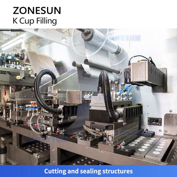 Introducing the ZONESUN ZS-KCFC6 high-speed rotary K-Cup filling and sealing machine, engineered for outstanding efficiency and precision in modern coffee production. This advanced coffee capsule filling machine features a robust cam-driven structure that guarantees stable operation, while allowing quick mold changes to accommodate various capsule types—including K-Cups, Nespresso-style capsules, and other single serve coffee pods.