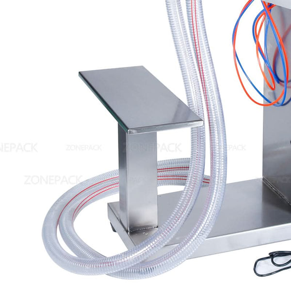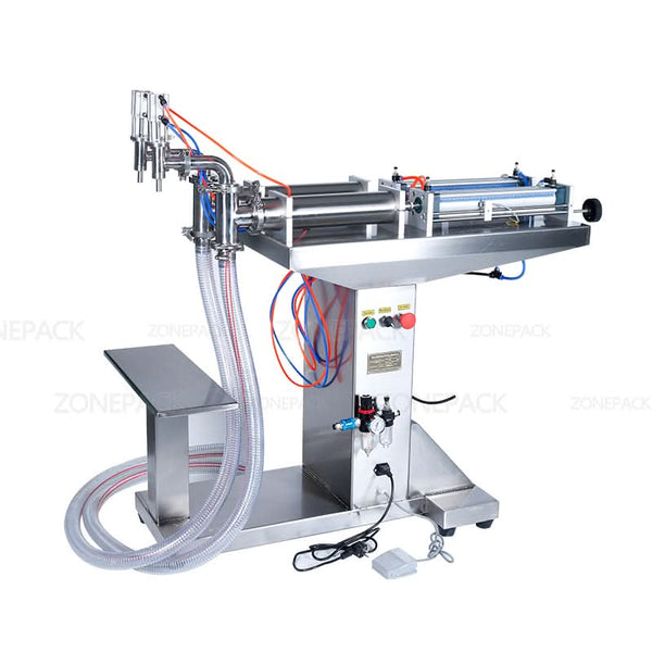The ZONESUN ZS-YTFS2 is a pneumatic liquid filling machine designed for efficient and accurate filling of liquids such as shampoo, oil, hand sanitizer, and beverages. With dual nozzles and adjustable volume settings, it supports a wide range of filling capacities to meet diverse production needs. Powered by both electricity and compressed air, this machine is ideal for use in food, cosmetic, and pharmaceutical industries. Its standing design and adjustable bottle holder make it easy to operate and integrate into existing workflows.