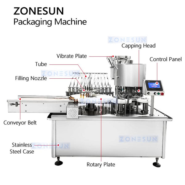 The ZS-AFC12P is a high-performance integrated filling and capping machine designed for small vials such as penicillin bottles. It combines filling and sealing functions into one streamlined unit, enhancing production efficiency and packaging precision. With customizable filling heads and volume ranges, it adapts to various pharmaceutical needs. ZONESUN delivers reliable automation for vial packaging operations.