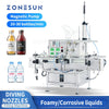 The ZONESUN ZS-DTMP4AL automatic liquid filling machine is designed for precise bottling of foamy and low-viscosity liquids such as essential oils, perfumes, beverages, and more. Equipped with four diving nozzles and magnetic pumps, it ensures high filling accuracy and minimizes dripping. The integrated chain conveyor offers strong load capacity and smooth transport of heavier containers. This tabletop unit can be paired with labeling and capping machines to create a compact automated production line—ideal for cosmetics, pharmaceuticals, and daily chemical industries.