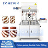 Elevate your packaging with the ZS-FM250 dual-color filling machine. Engineered for visual impact and operational efficiency, this machine features multiple nozzles that dispense two different colored substances simultaneously, creating a captivating spiral effect inside each bottle. The rotatable base enhances versatility, while the synchronized nozzle descent ensures clean, precise fills. Ideal for cosmetics, food, or specialty products, this machine combines aesthetics with performance—perfect for brands that want to stand out.