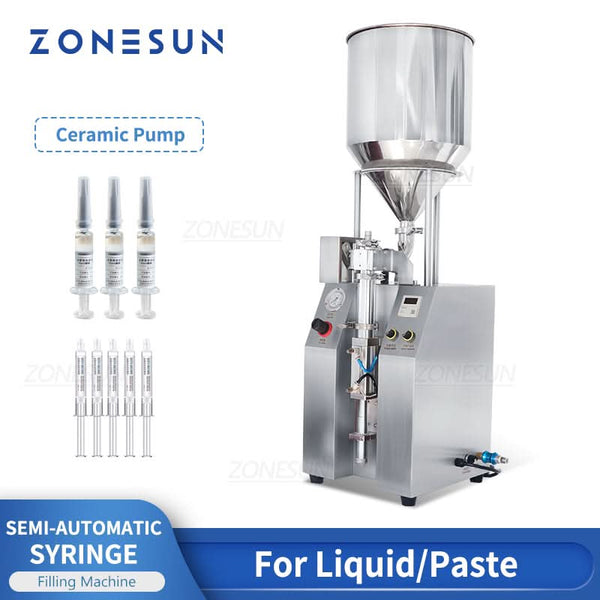 The ZONESUN ZS-YTCP12V semi-automatic syringe filling machine is designed for precise filling of liquids and pastes into syringes. Equipped with a ceramic plunger pump, it offers high filling accuracy, making it ideal for applications in cosmetics, pharmaceuticals, and personal care. The durable stainless steel construction and 20L hopper ensure hygienic processing and efficient batch handling in small-scale production environments.