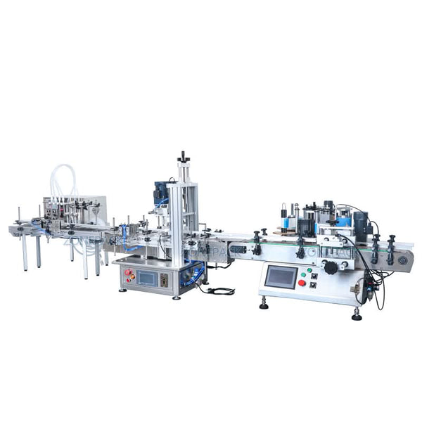This automatic filling, capping, and labeling line is designed for efficient bottle packaging of liquids and pastes like shampoo, oil, and lotion. With servo control and customizable options, it's ideal for industries needing precise bottle filling, cap sealing, and label application. A perfect solution for cosmetics, food, and chemical production.