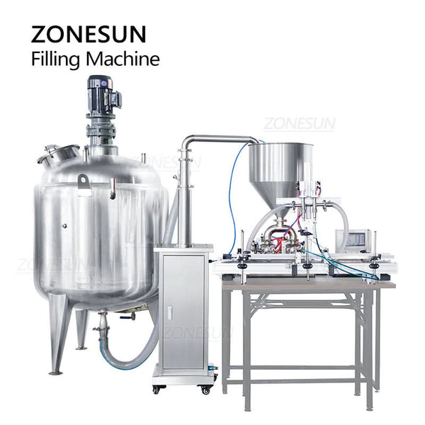 The ZONESUN ZS-DTPT2 is a fully automatic pneumatic piston pump filling machine designed for high-viscosity products. Integrated with a mixing tank and feeding pump, it ensures smooth emulsification and consistent paste delivery. Ideal for cosmetics, creams, and daily chemical products, this system combines heating, stirring, and precise piston filling to handle thick liquids with ease. Its robust stainless steel construction and modular design make it a reliable solution for medium to large-scale production lines.