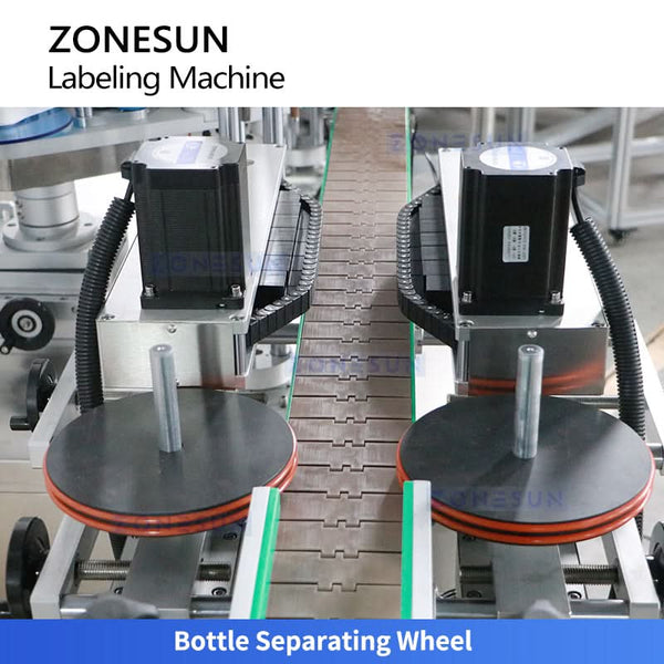 The wheel spaces out bottles evenly to ensure machine works stably.