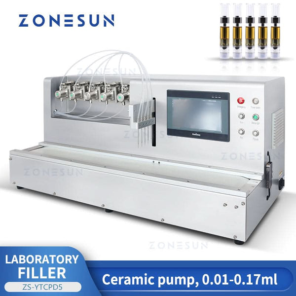The ZS-YTCPD5 is a precision-engineered automatic liquid filling machine ideal for lab and small-scale production environments. Equipped with five ceramic plunger pumps, it delivers ultra-accurate micro-filling performance for high-value or sensitive liquids. Designed for reliability, customization, and ease of operation, this unit supports efficient and contamination-free filling across a range of applications.