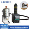 The ZS-90TJ hot melt glue gun is a precision sealing and labeling tool designed for paper bags, cartons, albums, and leather goods. It features a digital temperature display for accurate heat control and offers interchangeable gluing heads for different production needs. Widely used in the printing and packaging industry, its compact body and dual-capacity glue storage make it highly versatile for both small and medium-scale operations.