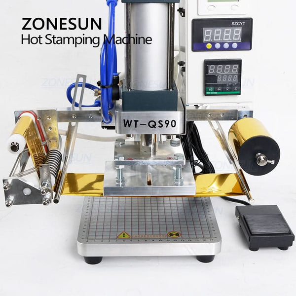 ZONESUN ZS-QS90 Pneumatic bronzing machine Leather Hot Foil Stamping Machine Counter Function Leather Embossing Estampadora