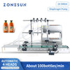 Compact and automation-ready, the ZONESUN ZS-DTDP4G uses a diaphragm pump for precise filling of low-viscosity liquids such as water, fresh juice, toner, or cosmetics. Its built-in conveyor belt streamlines bottling operations and supports fast-paced production of up to 100 bottles per minute. Ideal for small-scale beverage, chemical, or cosmetic packaging lines, this 4-head system ensures space efficiency and accuracy.