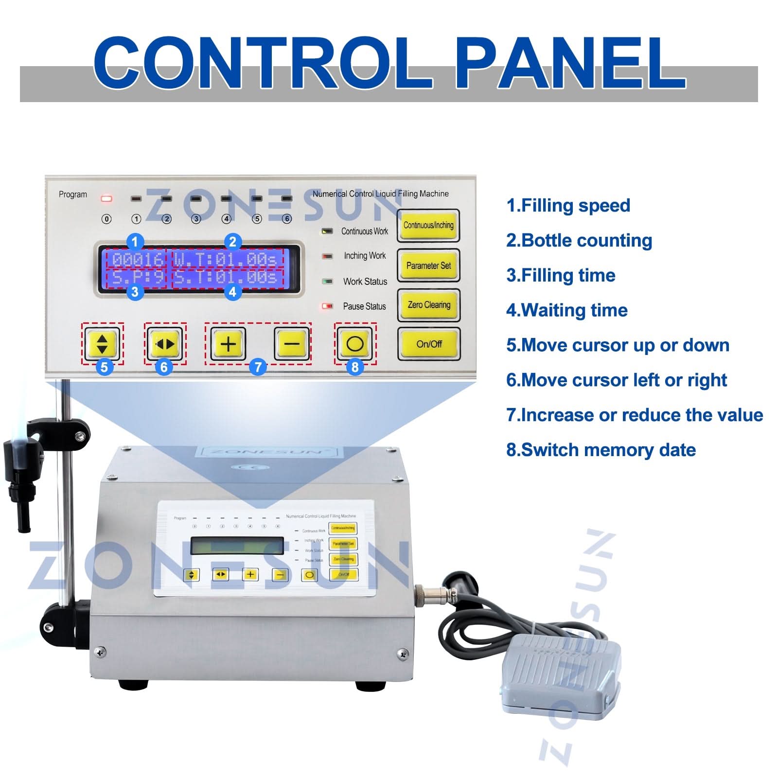 ZONESUN 5-3500ml ZS-GFK160 Digital Liquid Filling Machine
