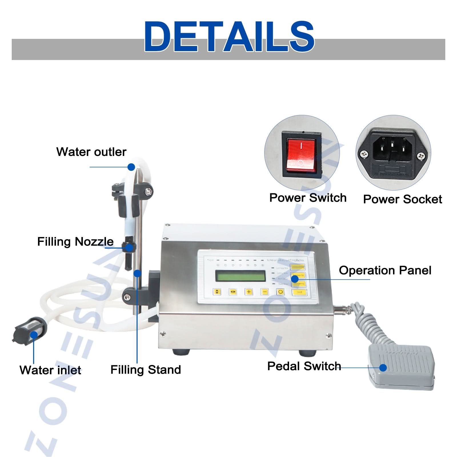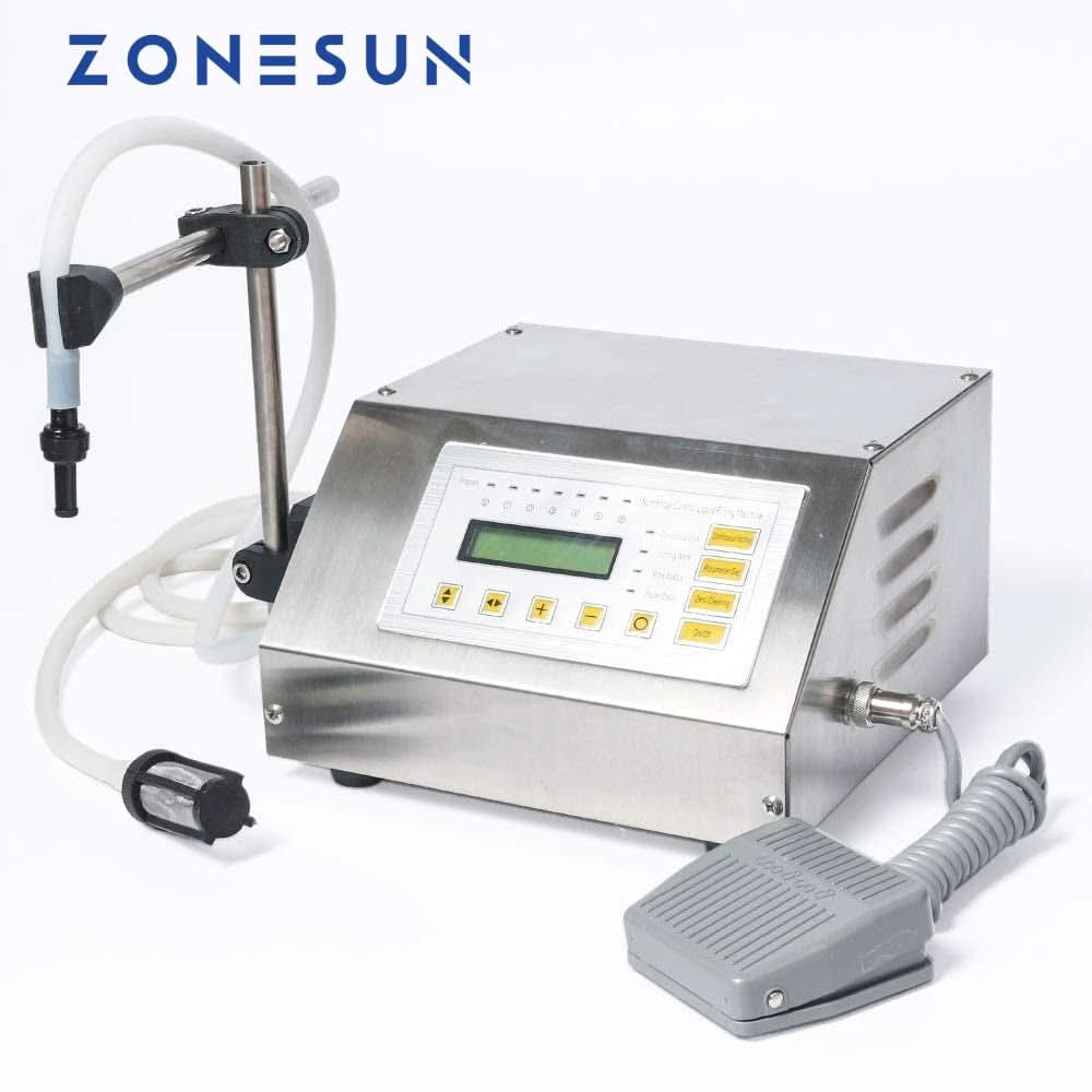 The ZONESUN ZS‑GFK160 digital liquid filling machine delivers precise, efficient performance for low‑viscous liquids such as water, oils, wine, and beverages. With advanced micro‑computer control, it allows easy adjustment of filling time and speed for accurate, repeatable results. The stainless steel body meets GMP requirements and is durable, compact, and easy to clean. Features include anti‑drip design, self‑suck pump, memory function, and compatibility with multiple bottle sizes. Ideal for food, cosmetic, chemical, and beverage production, it’s a reliable solution for small businesses and workshops.