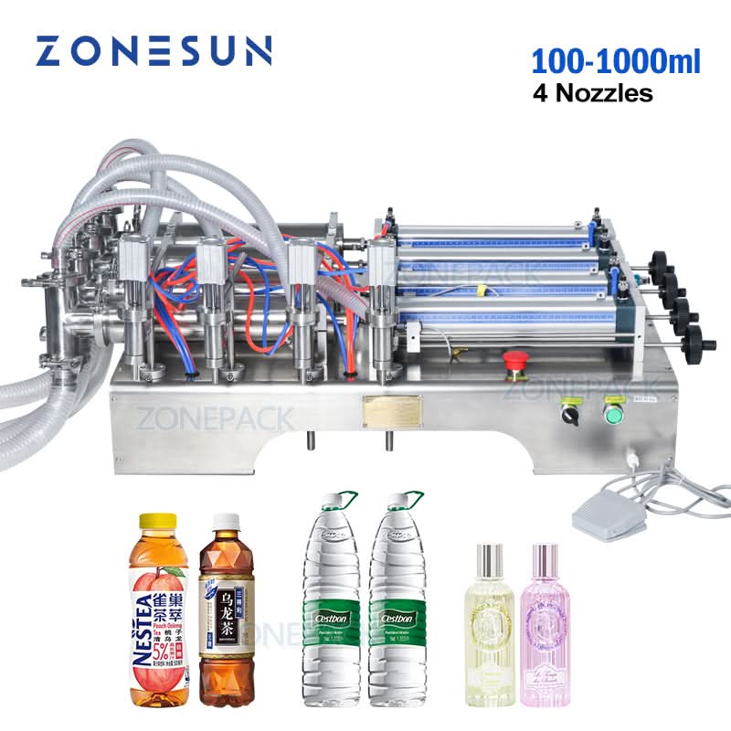 ZONESUN 4-Head Pneumatic Liquid Filling Machine for Alcohol Perfume Oil Water