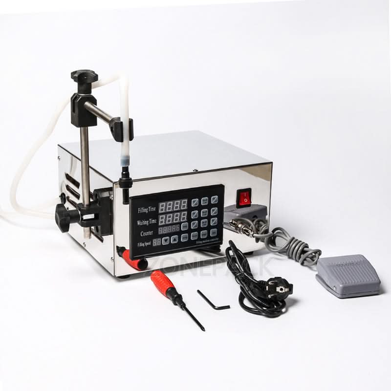 The ZONESUN ZS-KC280 Automatic Liquid Filling Machine uses advanced microcomputer control and a corrosion-resistant membrane pump to deliver precise, drip-free filling for low-viscosity liquids. Ideal for oils, beverages, chemicals, and cosmetics, it features a stainless steel shell, LCD display, and touch panel for easy operation. With automatic counting, power-off memory, and high-speed self-priming capability, this compact filler is perfect for small batch production in labs, workshops, and commercial settings.