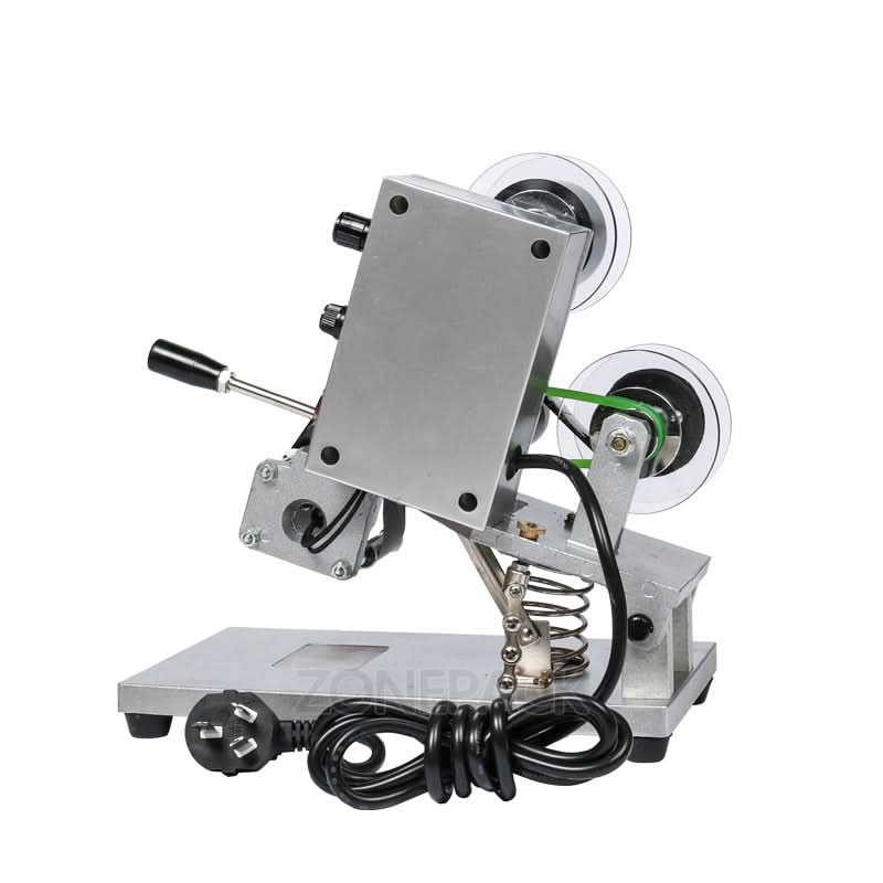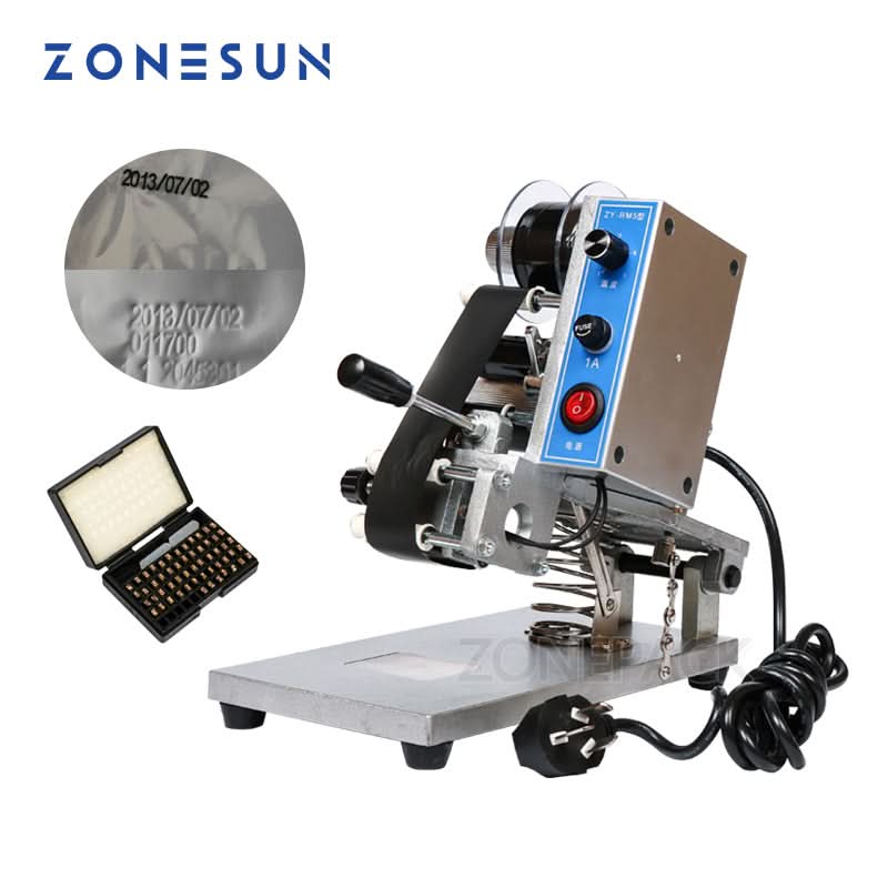 The ZY-RM5 Color Ribbon Hot Printing Machine is a compact and efficient solution for printing production dates, lot numbers, and other codes on various packaging materials. Using thermal ribbon technology, it delivers clean, smudge-free prints on plastic film, aluminum foil, paper sheets, and even leather. Ideal for food and pharmaceutical industries, this machine ensures durable, legible markings while keeping the workspace free from ink contamination. It supports up to three lines of text and includes a standard set of characters for immediate use.