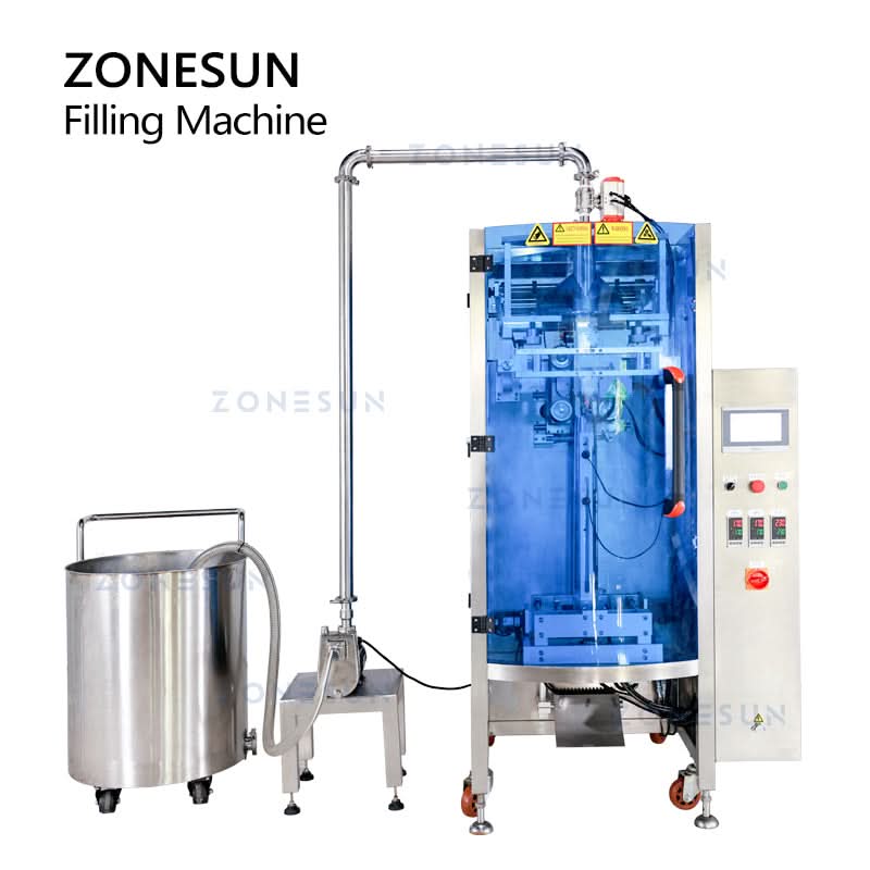 The ZONESUN ZB-420GSY is an automatic filling and sealing solution designed for packaging liquid or paste materials into customizable bags. With variable tank capacities and film widths, it accommodates a wide range of products like honey, sauces, peanut butter, and viscous liquids. Its vacuum sealing system ensures a secure, clean seal, while the automatic feeding pump and PLC control enhance efficiency in food and industrial packaging environments.