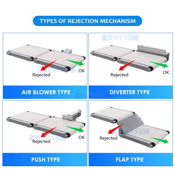 Rejection Type Push / Lever / Flap / Air Blower / Belt Sinking (Customizable)