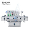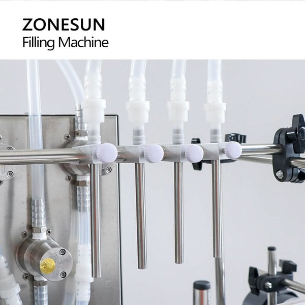 The ZONESUN ZS-DTMP4Y is an automatic desktop liquid filling machine equipped with four magnetic pump heads for precise and hygienic dosing. Designed for low-viscosity liquids like oil, soy sauce, perfume, ink, and milk, it ensures consistent flow control and accurate filling volumes. Compact and versatile, it can be easily integrated with capping and labeling machines to form a streamlined, fully automated production line.