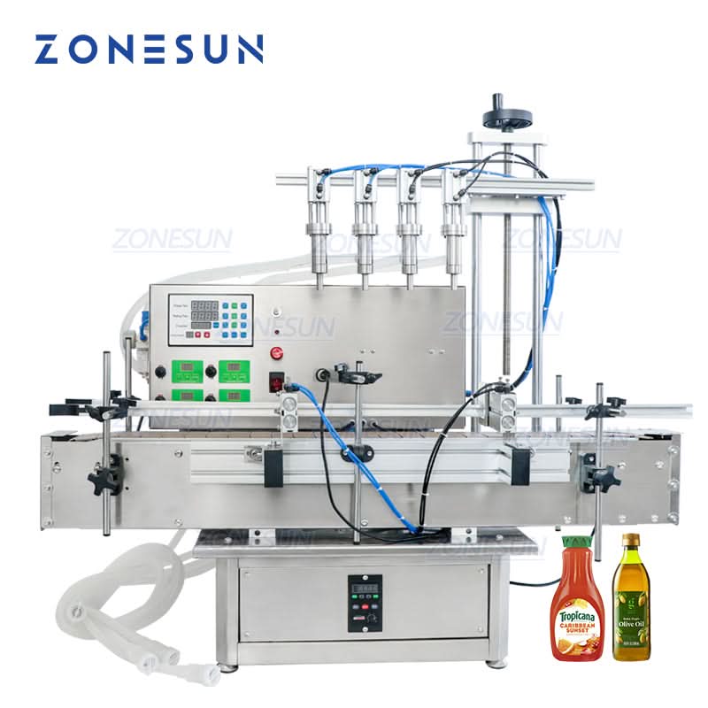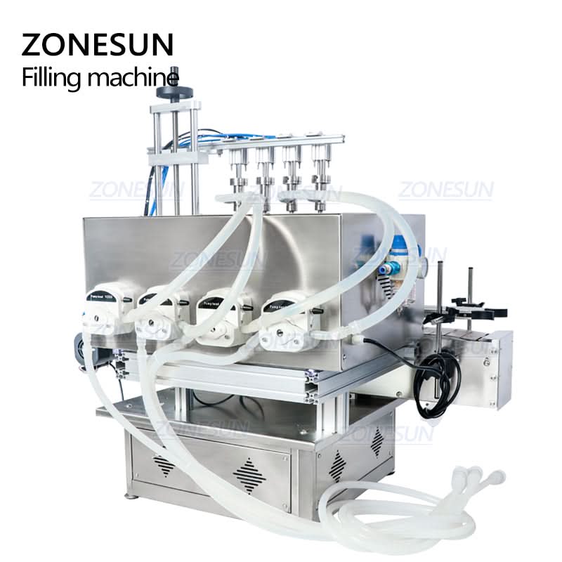 The ZONESUN ZS-DTPP4E is a versatile liquid filling machine designed for a wide range of products including juice, essential oils, ink, and gel. Equipped with four pneumatic filling nozzles and precision peristaltic pumps, it ensures accurate and efficient filling. Ideal for small to medium-volume production, it integrates smoothly with automated capping and labeling systems—perfect for food, cosmetics, chemical, and pharmaceutical applications.
