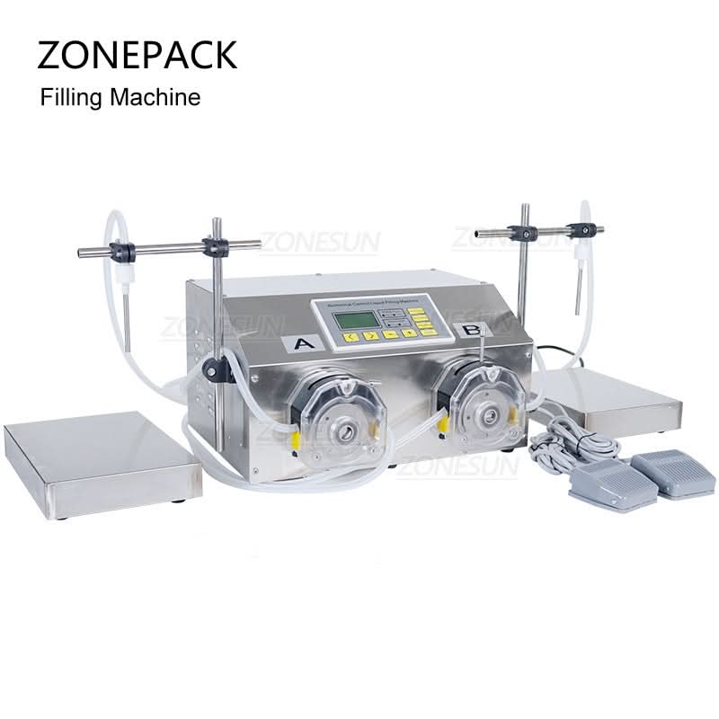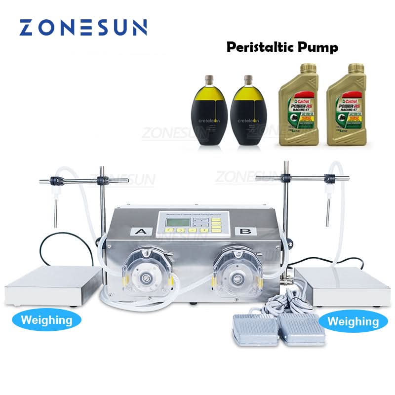 The ZS-PP532W is a dual-nozzle liquid filling machine equipped with a precision peristaltic pump and integrated weighing system. Designed for high-accuracy filling of non-particulate liquids such as milk, ink, perfume, and liquor, this machine offers independent nozzle control for flexible operation. Its user-friendly interface and compact design make it ideal for small-scale production and lab use across food, cosmetic, beverage, and pharmaceutical industries.