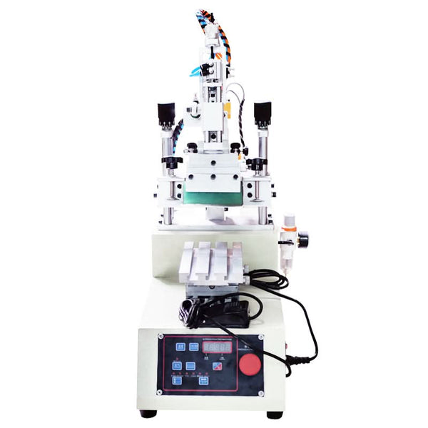 Introducing our compact swing-arm screen printing machine, designed with a unique swing-arm structure that significantly reduces operational time and boosts production efficiency. Its minimalist mechanical design makes it easy to operate and adjust, allowing for foolproof handling even for beginners. With simple maintenance and a long service life, all components are standardized for easy market availability. The T-slot worktable facilitates quick fixture assembly and adaptation, while the adjustable squeegee pressure ensures consistent print quality to meet diverse printing needs.