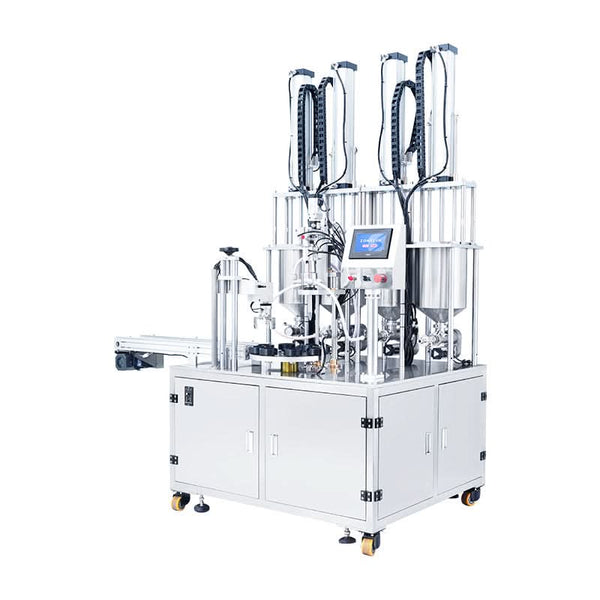 The ZONESUN ZS-VTRPF4 is an automatic rotary 4-color filling machine designed to fill multi-color creams evenly into bottles or jars. With four rotary filling heads, it is ideal for producing cosmetic creams, whipped body butters, and colorful food pastes. Suitable for 5–100ml filling, this machine is widely used in cosmetics, food, and daily chemical industries.