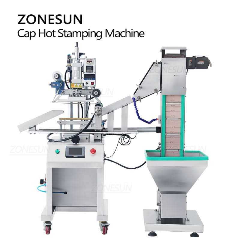 The ZONESUN ZS-819R2A is a pneumatic hot stamping machine designed for decorating bottle caps with vibrant foil designs. Equipped with an automatic cap feeder and precision stamping system, it ensures consistent results across various cap sizes. Ideal for enhancing product appearance in food, beverage, and daily chemical industries, this machine offers high efficiency, adjustable temperature control, and customizable stamping length. A reliable solution for branding and decorative packaging.