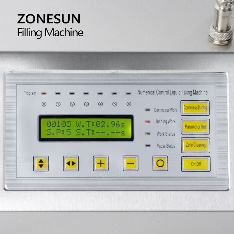 The ZS-DTDP160A is a compact automatic liquid filling machine designed for low-viscosity products like juice, edible oil, and mineral water. Equipped with a digital control panel, it allows precise adjustment of filling speed and time. Its intelligent memory function stores up to six sets of data for quick reuse, while the electric eye sensor enables automatic bottle detection for hands-free operation. Ideal for use in food, beverage, pharmaceutical, and daily chemical industries, this machine offers reliable performance and labor-saving efficiency.