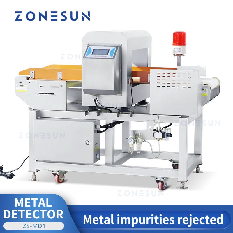 The ZS-MD1 Metal Detection Conveyor is designed to identify and reject trace metal contaminants in production lines for food, cosmetics, pharmaceuticals, and more. Its high-sensitivity system detects both ferrous and non-ferrous metals—even if embedded in packaging—and activates an automatic rejection unit to remove impurities instantly. This protects machinery, preserves product integrity, and minimizes operational downtime, making it ideal for quality control and cost-effective manufacturing.