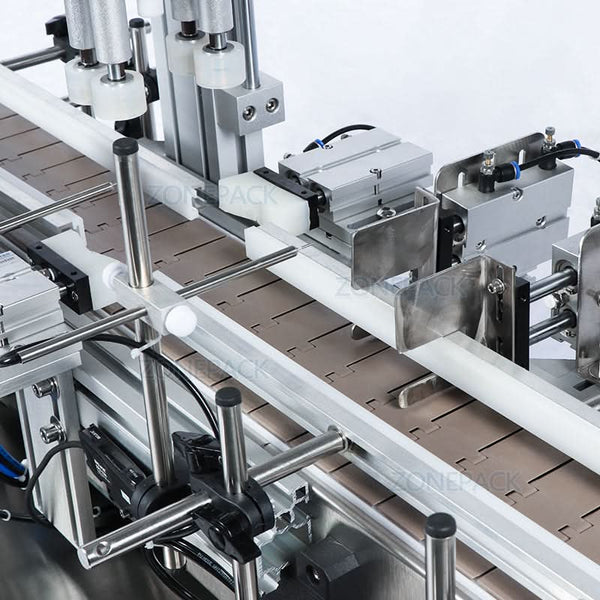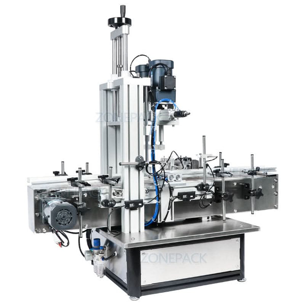 The ZONESUN ZS-XG1870 is a pneumatic desktop capping machine designed for automatic screw capping of plastic and glass bottles. With adjustable settings, it handles bottle heights from 60–270mm and cap diameters from 18–70mm, making it suitable for perfume, PET, cosmetic, beverage, and chemical containers. Operating at up to 40 bottles per minute, it offers high efficiency in a compact footprint. Ideal for integrating into semi-automatic production lines.