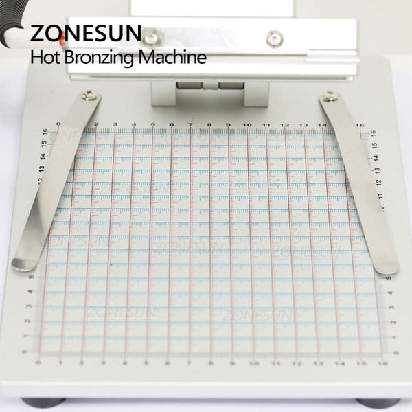 The ZONEPACK ZS-902M is a compact tabletop hot foil stamping machine designed for precise branding on leather, paper, PVC, and other materials. Its low-profile design and heat-resistant handle make mold changes safe and convenient. The workbench features a detailed scale and dual clips for accurate material positioning, while the digital temperature control panel ensures consistent heat levels for clean, professional results.